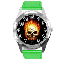 GHOST RIDER SKULL HARLEY HALLOWEEN GREEN LEATHER HARD ROCK FILM METAL CD WATCH